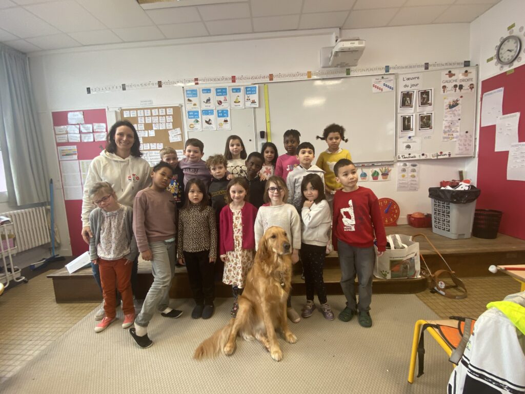 Les élèves ont été très attentifs et ont posé beaucoup de questions. Ce moment a été très enrichissant pour tous : nous avons appris beaucoup de choses sur le handicap, l’entraide et le travail des chiens guides.