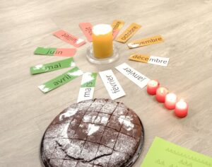 Dans notre classe, nous fêtons les anniversaires en introduisant de manière sensorielle le principe de la révolution de la Terre autour du soleil.